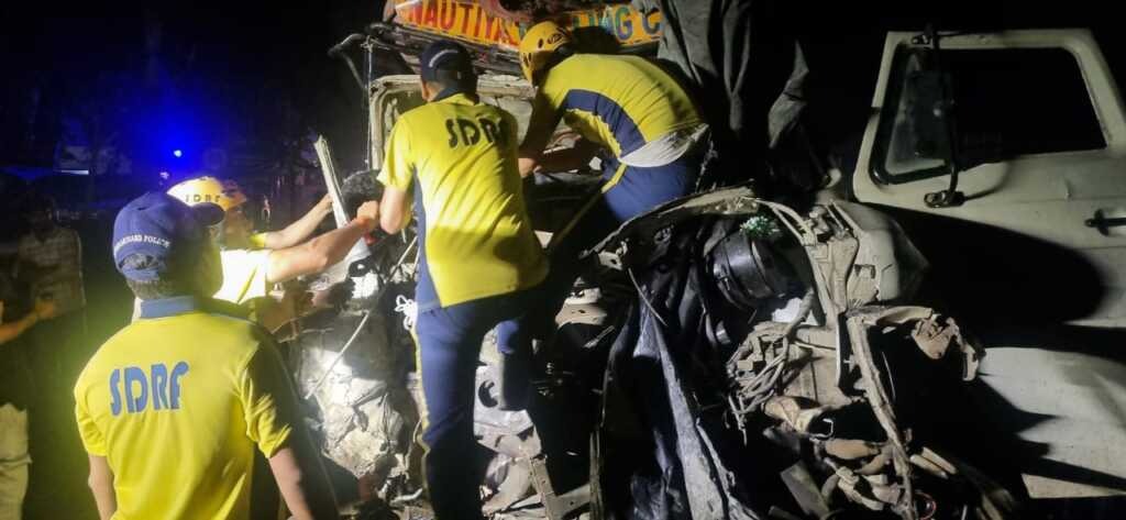 ऋषिकेश में भीषण सड़क हादसा: ट्रक और ट्रॉले की टक्कर के बाद लगी आग, दो चालकों की मौत, एक घायल को SDRF ने बचाया