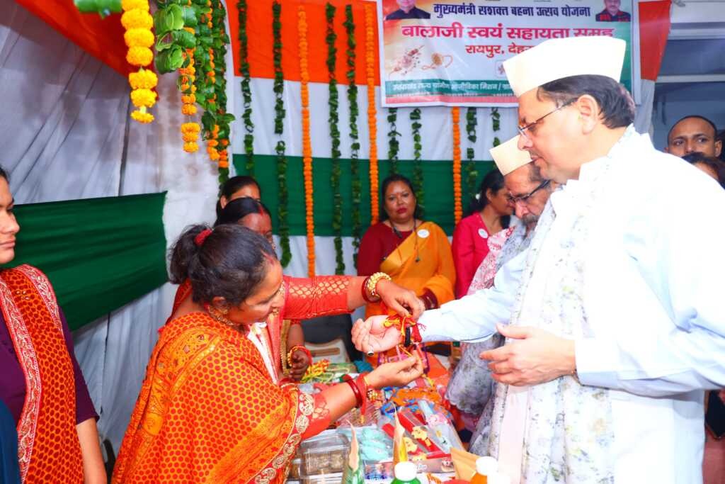 धामी ने बताया कि वर्ष 2023 में रक्षाबंधन के अवसर पर शुरू की गई “मुख्यमंत्री सशक्त बहना उत्सव योजना” से महिला समूहों को बड़ी पहचान मिली।
