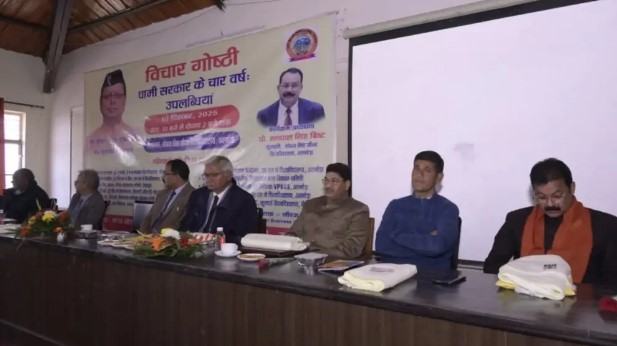 सोबन सिंह जीना विश्वविद्यालय के गणित विभाग के ऑडिटोरियम में आयोजित इस गोष्ठी का उद्देश्य बीते चार वर्षों में राज्य में हुए विकास कार्यों की समीक्षा, जनकल्याणकारी योजनाओं के प्रभाव का आकलन तथा भविष्य की प्राथमिकताओं पर सार्थक विमर्श करना रहा। गोष्ठी में राज्य सरकार की उपलब्धियों और चुनौतियों को लेकर विचार साझा किये गए।