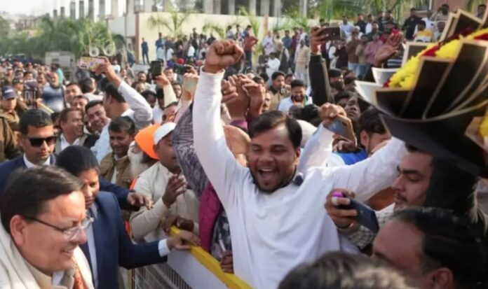 हरिद्वार । किसानों ने मुख्यमंत्री पुष्कर सिंह धामी का उत्साहजनक स्वागत किया। किसानों, जनप्रतिनिधियों तथा स्थानीय अधिकारियों ने फूलों की माला पहनाकर, पुष्पवर्षा कर और गन्ना भेंट कर मुख्यमंत्री का अभिनंदन किया।