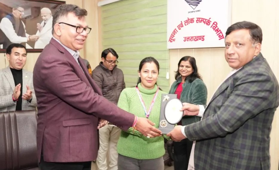 प्रतियोगिता के विजयी प्रतिभागियों को महानिदेशक सूचना बंशीधर तिवारी द्वारा पुरस्कार प्रदान किये गये।