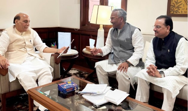 पूर्व सीएम त्रिवेंद्र व सांसद अजय भट्ट मिले राजनाथ सिंह से