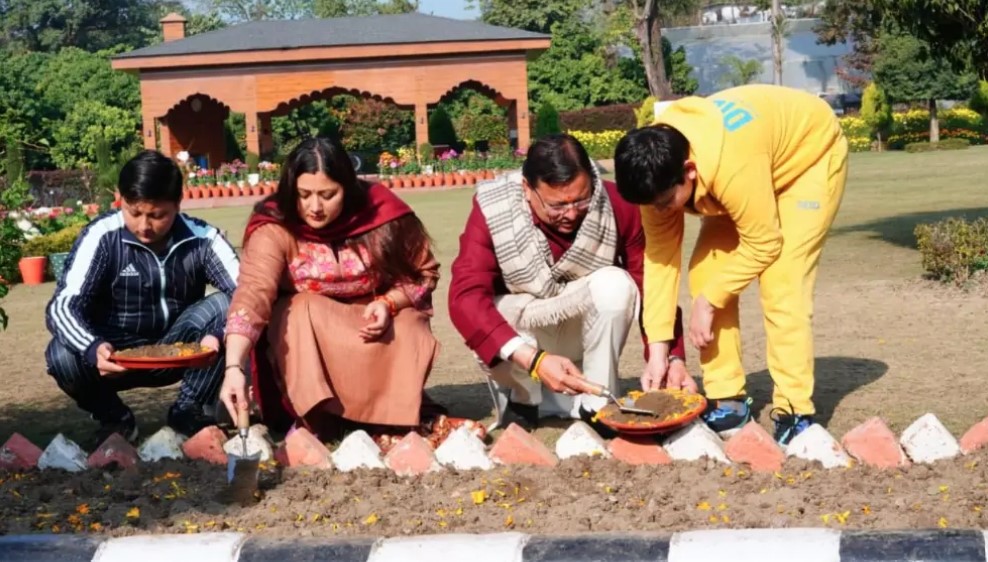 मुख्यमंत्री का पर्यावरण संदेश, सपरिवार ट्यूलिप बल्ब रोपण