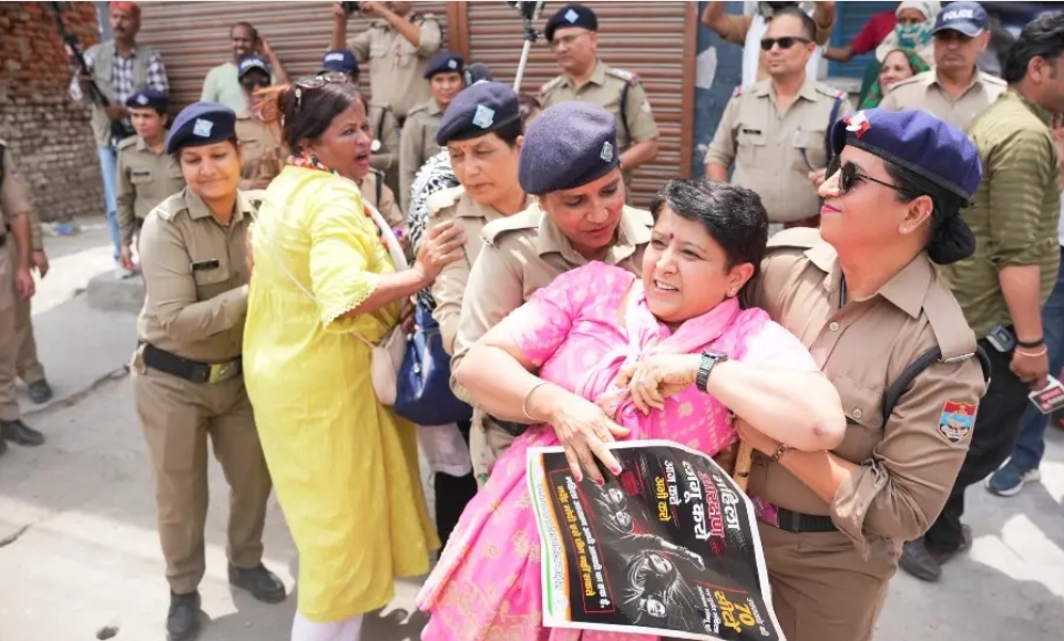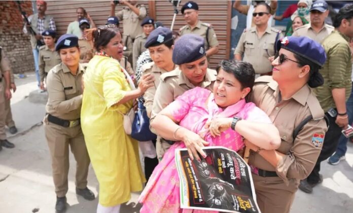 विधानसभा से कुछ दूरी पहले ही पुलिस प्रशासन द्वारा बैरिकेडिंग लगाकर मार्च को रोक दिया गया। इस दौरान प्रदर्शनकारियों और पुलिस के बीच तीखी नोकझोंक हुई तथा बैरिकेडिंग पार करने को लेकर हल्की झड़प की स्थिति भी बनी। पुलिस द्वारा कई महिला कार्यकर्ताओं को हिरासत में लेकर पुलिस लाइन ले जाया गया, जिससे आक्रोश और बढ़ गया।